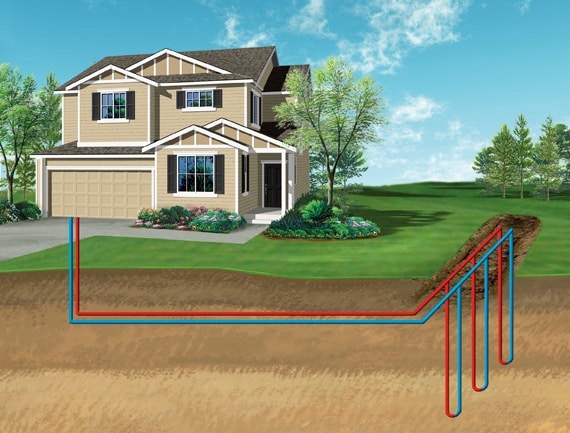 If you have sufficient land, you can create a horizontal loop through an open field by burying the lines six feet deep in the ground. Again, the lines need to be 150 feet long for each ton of heating and cooling capacity, and should be at least 10 feet apart.
