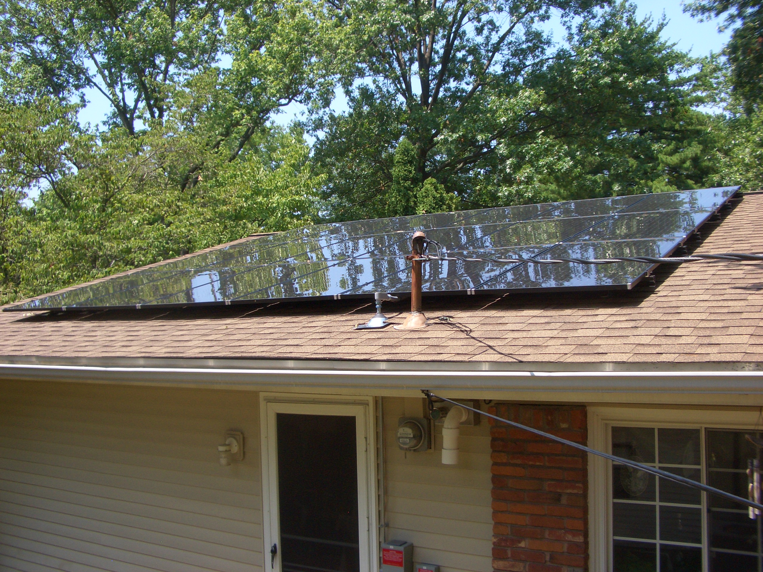 Our home is not an ideal candidate for solar, because our roof faces primarily east and west, and solar is best when it’s facing due south. However, since we have a relatively low slope on our roof (about 15 degrees), we still get pretty good solar insolation. We have a lot of trees, but have an unshaded section on our roof big enough to install 18 solar modules, which took about 330 square feet. This 4.4 kW system is projected to produce about 5200 kWh annually, which is likely to be 70% or more of our energy.