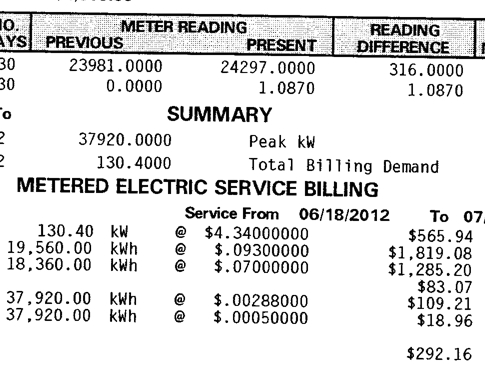 - At $0.1059/kWh, that cost $22.56 + the $8 monthly service charge and taxes for a total of $32.97 for the month.
