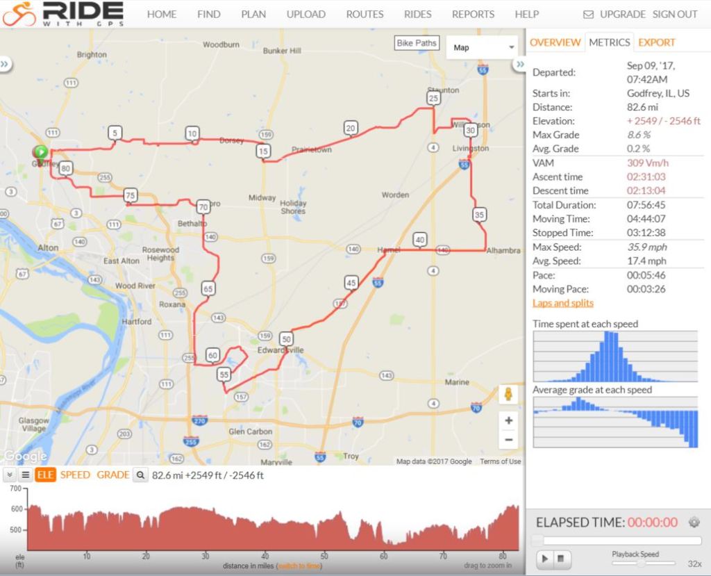 As always, we met Friday afternoon to set up camp for the weekend. This year’s event was again held at Lewis & Clark Community College, which has been a perfect hosting place for the tour. It gives people the option to camp in tents or RVs, stay at a local or nearby hotel, or make the drive from their home in the St. Louis area each day. There has been some musing that this has contributed to an overall smaller gathering of people in the evenings, as riders are able to more easily come and go home. I consent that there’s merit to that, and yet I like the closer proximity to home and the flexibility that it allows.